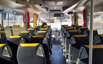 49 hochfeste Sitze + 1 Reiseleitersitz + Kinderwagen- und Rollstuhlplatz